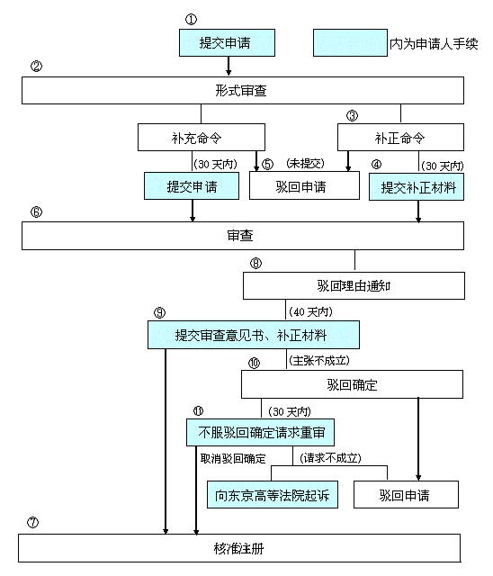 ⑦中負責的審查官,確定沒有駁回注冊理由時,向申請人發出核準確定的通知。